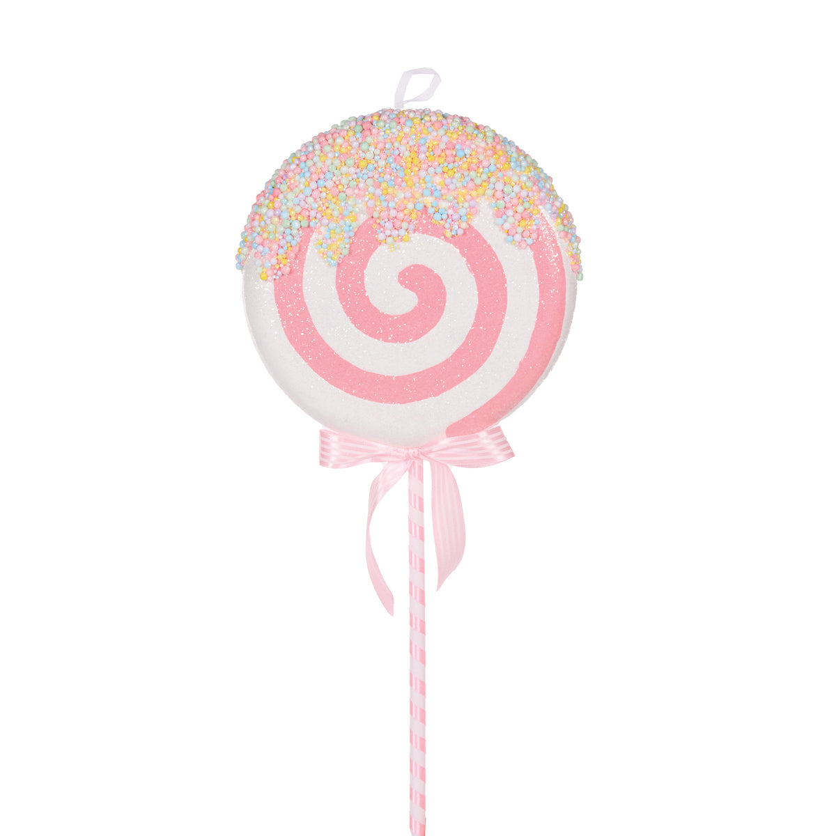 ICED SPRINKLE PINK SWIRL LOLLIPOP